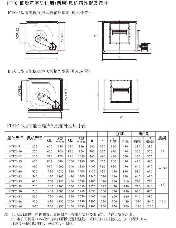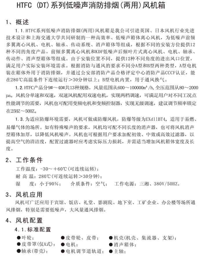 一、HTFC(DT)-I、II、V 系列低噪聲消防排煙(兩用)風機箱