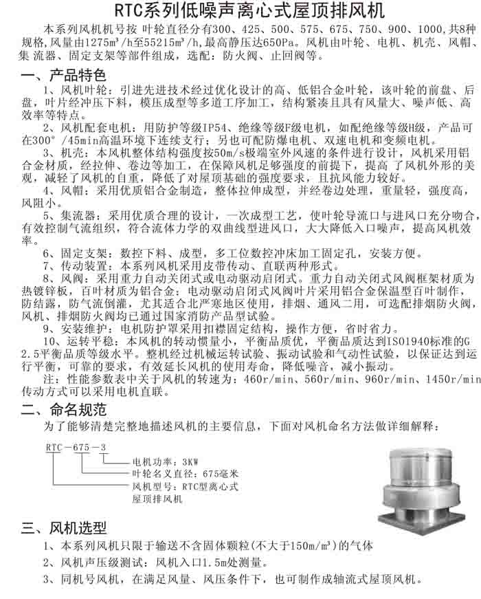 四、RTC 系列鋁制離心式屋頂風機